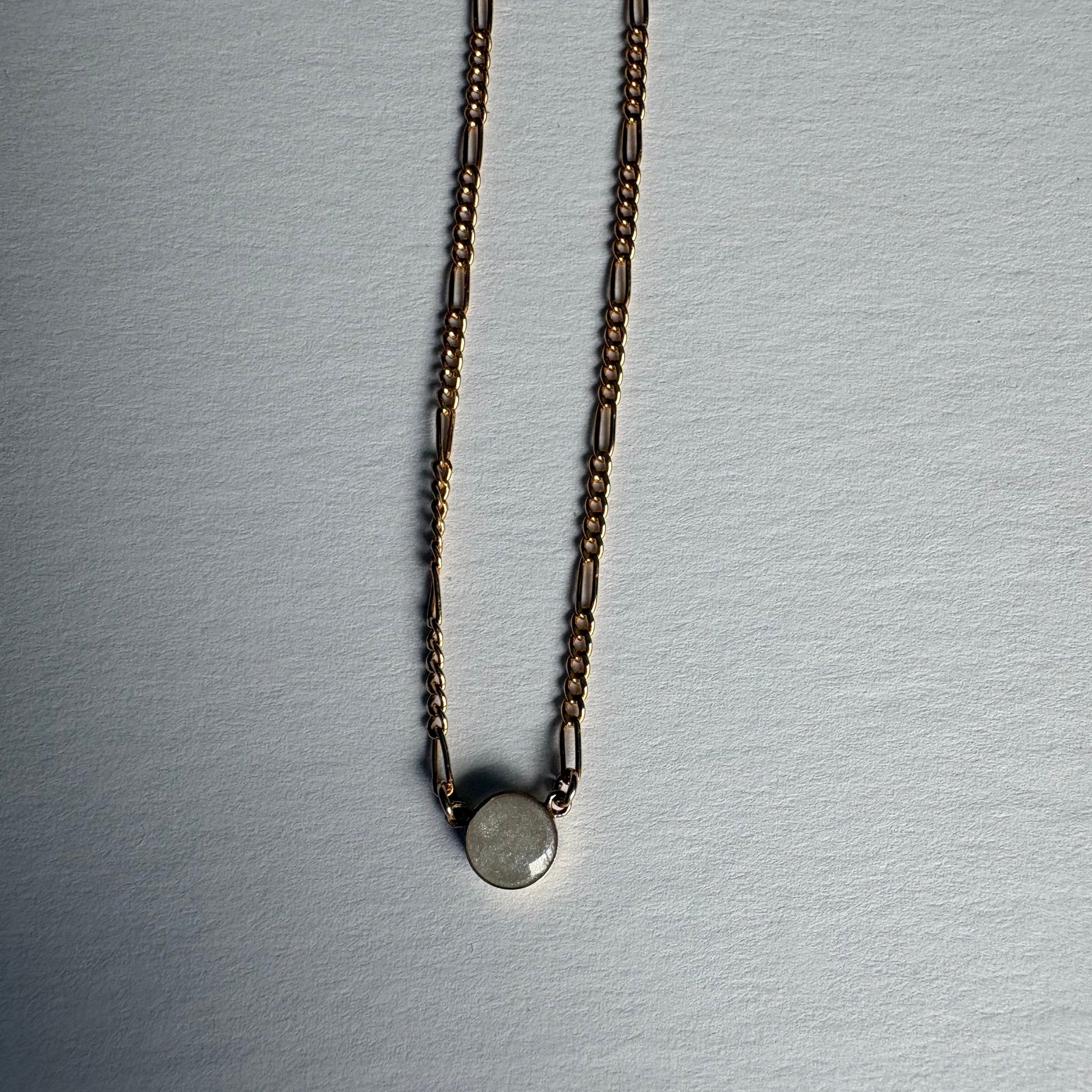 A delicate 6mm round keepsake necklace designed to hold what matters most, close to your heart. Set on a timeless gold filled Figaro chain, this piece is both meaningful and minimal, created for everyday wear as a memorial necklace, remembrance piece or sentimental gift. Each pendant is made to quietly carry your story, offering comfort in a way that feels personal and lasting.