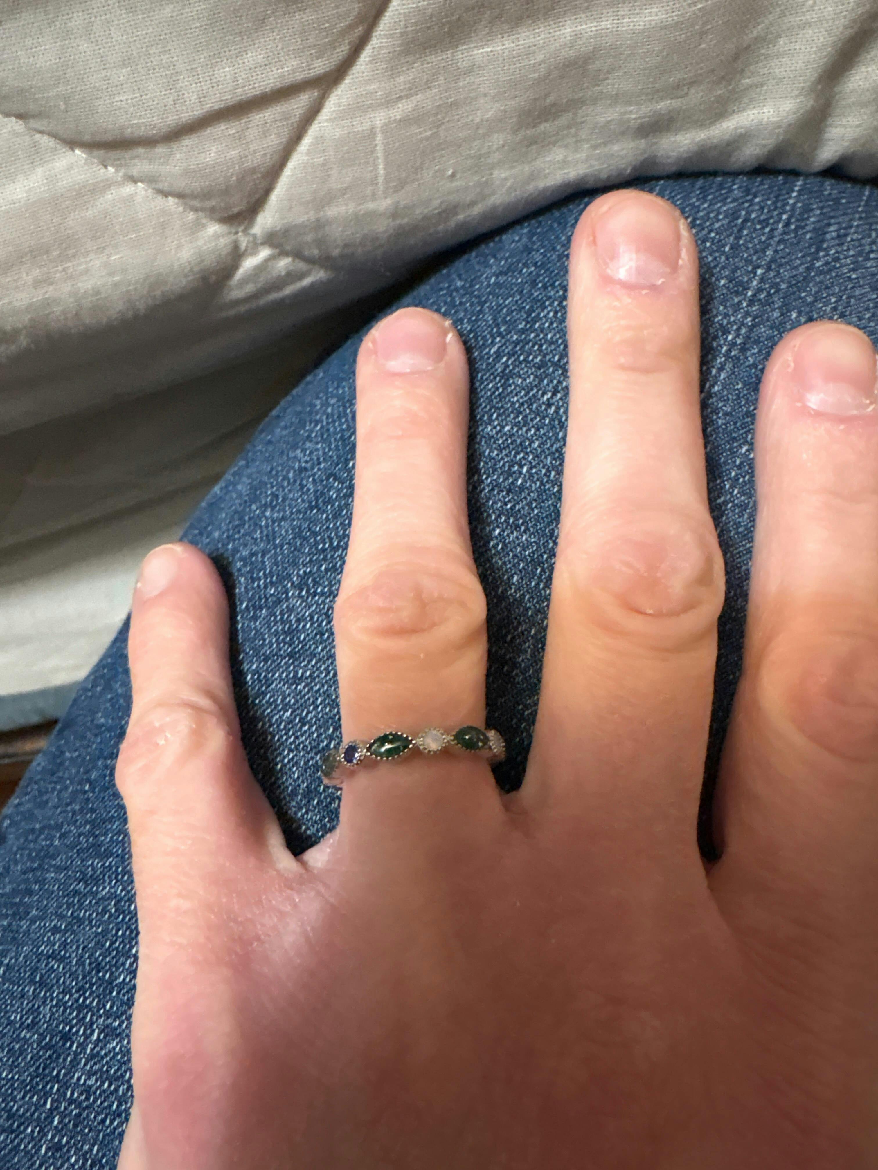 Love without end. The Millie Eternity Band is a delicate circle of love, symbolizing the bonds that never fade. This slender, stackable band is hand-crafted with your chosen inclusion and accented with birthstones to mark moments, people, or milestones.
